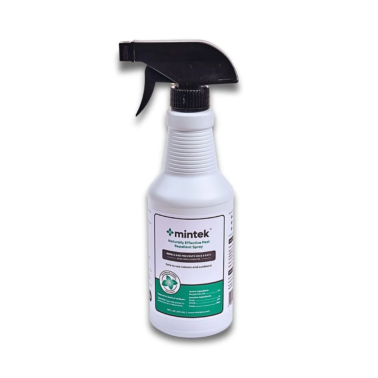 With Mintek’s 16-ounce spray bottle, you can easily coat pest-ridden areas with a water-soluble, natural peppermint repellent. The spray bottle with non-aerosol trigger sprayer controls delivery of safe and effective repellent by allowing adjustable protection to cover hard-to-reach or high-traffic areas precisely and directly. Rodents dislike peppermint’s powerful odor and stay away from places where it’s present. Mintek Spray is a USDA Certified Biobased Product as defined by the USDA BioPreferred Program.